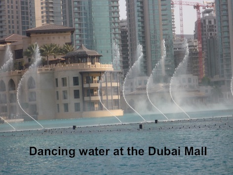 Today we took the hop on hop off bus around Dubai. The city is a series of shopping malls that contain restaurants, entertainment facilities, cinemas, top brand clothes and all sorts of activities for children. The malls are all air - conditioned and so are very popular. Designer clothes are relatively cheap because there is no tax. We had a three - course meal for $10 each with tax and service charges included. Some of the malls have a theme such as the Wafi mall that is Egyptian in style with pyramids, Cleopatra’s needle and statues of pharaohs and the sphinx. The Dubai mall contains the dancing fountain. This looks spectacular as the water moves to Arabic music in front of the Burj Khalifa. There is also an Olympic ice rink here, an aquarium with walls about 10 metres high and the most fascinating lolly shop I have ever seen. We visited Atlantis on the Palms. To reach this resort, which is also a water theme park based on the idea of the lost city of Atlantis, we had to travel under water through the trunk of the palm tree to the palm fronds, which contained the theme park and hotel. At the Jumeirah public beach we saw the Burj al Arab hotel, which looks like the sail of a ship. The architecture in Dubai is very different, and quite stunning. The Jumeirah Beach park also contains a theme park for children. The children can also ride in a train around the huge park. The beaches were very clean and had white sand as in Australia. We enjoyed a cruise on a Dhow on Dubai Creek. This creek empties into the Arabian Gulf but just goes 40 km inland. It is not what we would call a creek, but rather more like a lagoon. Many of the things we saw on the trip need a whole day to enjoy and explore completely. We did not have time to do Dubai justice, but we would definitely love to come back.